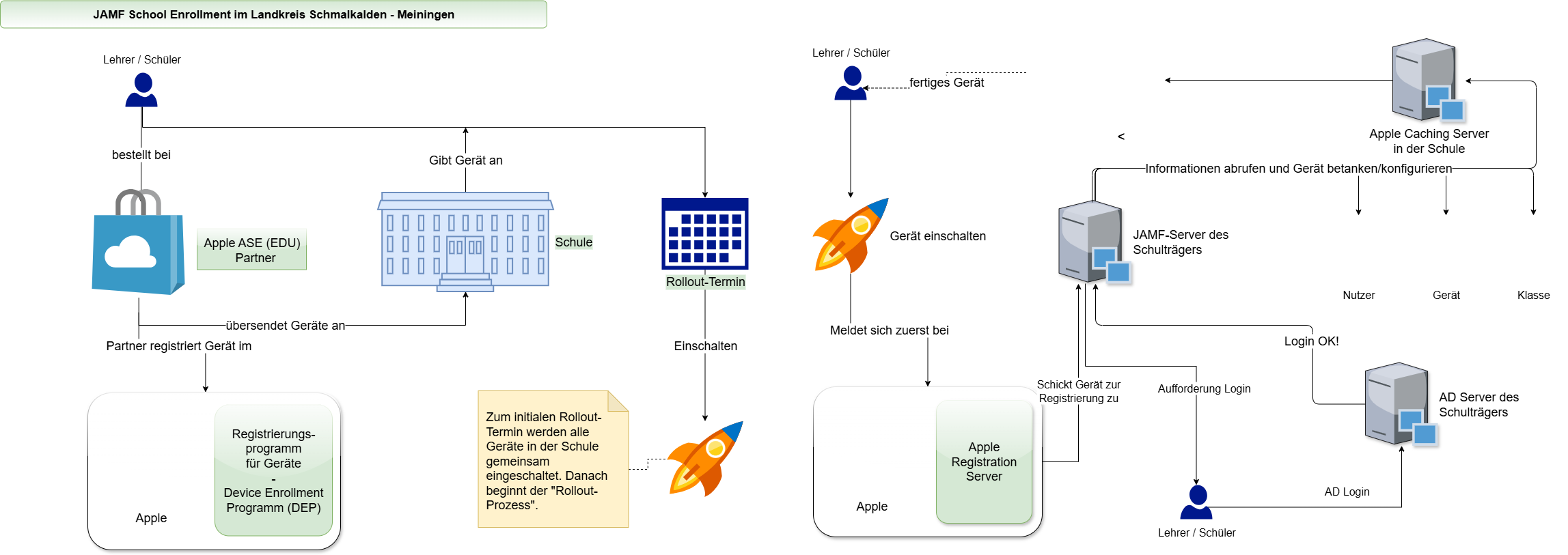 Vorbereitungen des SchulträgersAls Schulträger ist man für die technische Ausstattung des Gebäudes und die Schaffung der notwendigen Rahmenbedingungen für das Management der iPads zuständig. Diese Aufgabe unterteilt sich in mehrere Schritte: