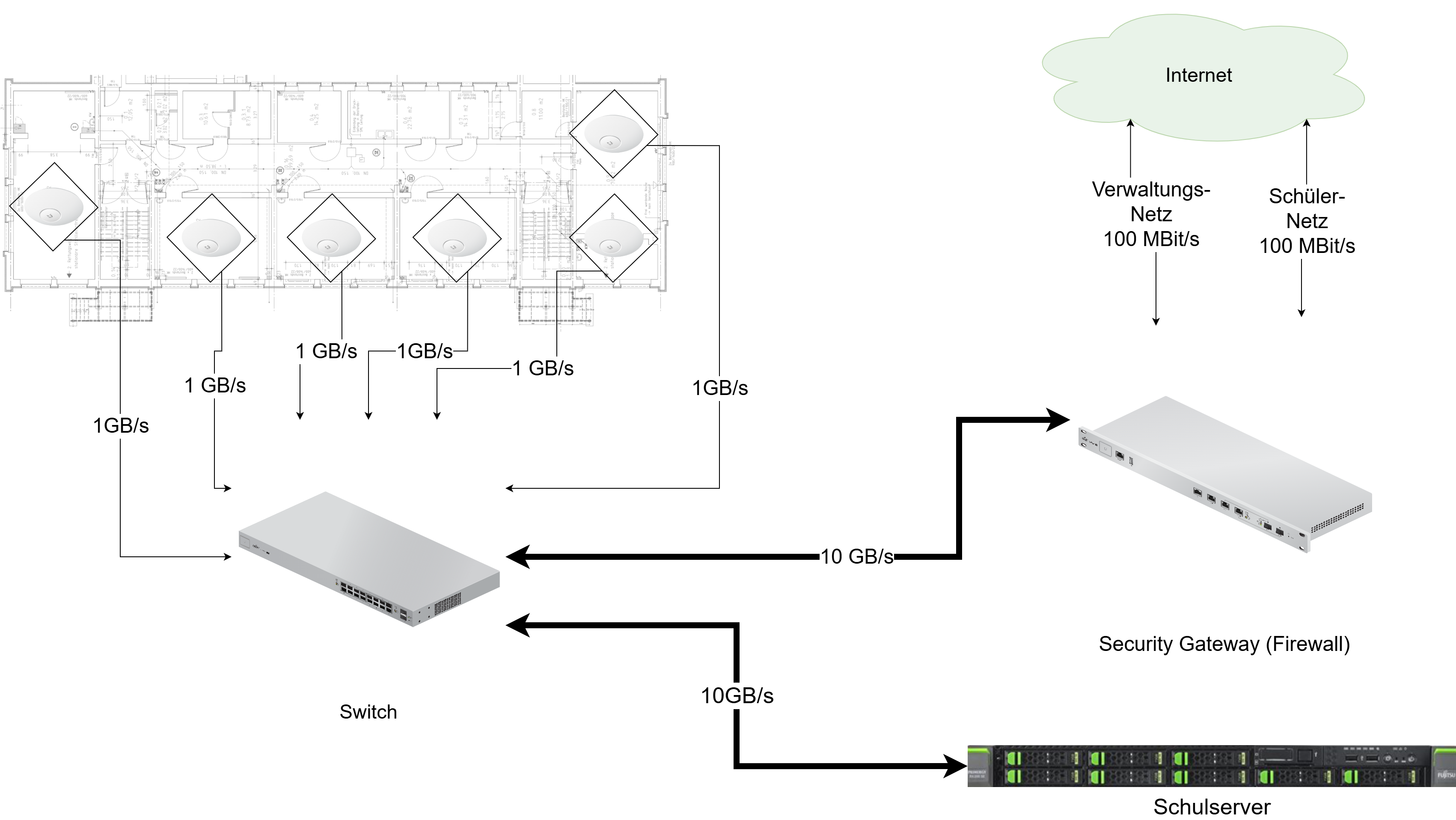 Um in der Schule eine ausreichende Bandbreite in der Versorgung mit WLAN zu etablieren sind gewisse Vorgaben und Strukturen bei der Verkabelung zu beachten. Insbesondere sollte bei der Wahl des WLAN Providers einer der Führenden Provider gewählt werden. Gute Erfahrungen wurden in diesem Bereich mit den Systemen von