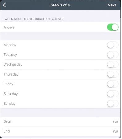 In Schritt 3 wählen Sie aus, an welchen Tagen und zu welchen Zeiten die Konfiguration aktiv sein soll: