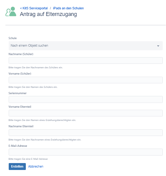 | Beschreibung | Dieser Antrag soll verwendet werden, damit Eltern die Geräte ihrer Kinder verwalten können. Nach Abschluss des Antrages erhalten die Eltern Zugriff auf die Jamf Parent Konsole. Nutzen Sie bitte den digitalen Prozess im Ticket Portal. Alternativ muss der ausgedruckte Jamf Parent Antrag im Sekretariat abgeben werden. Die Schulsachbearbeitung erstellt dann aus Schul-Seite das Ticket für Sie. |