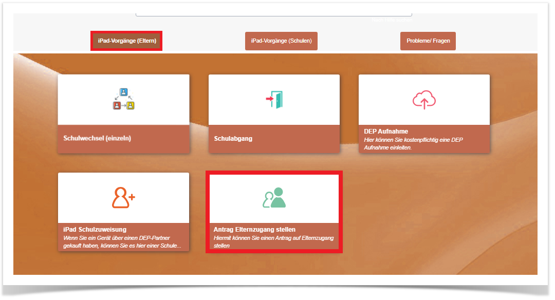 8. Klicken Sie dann auf "iPad-Vorgänge (Eltern)" und anschließend auf "iPad Schulzuweisung".