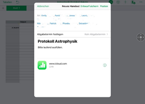 8) Im Numbers-Dokument kann die vorgefertigte Seite dann von den einzelnen Schülergrupprn kopiert werden: Klick auf den Tab → Duplizieren → Doppelklick in neuen tab und Namen ändern.