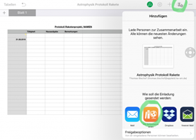 • Teilen von Dokumenten funktioniert analog auch für Pages und Keynote