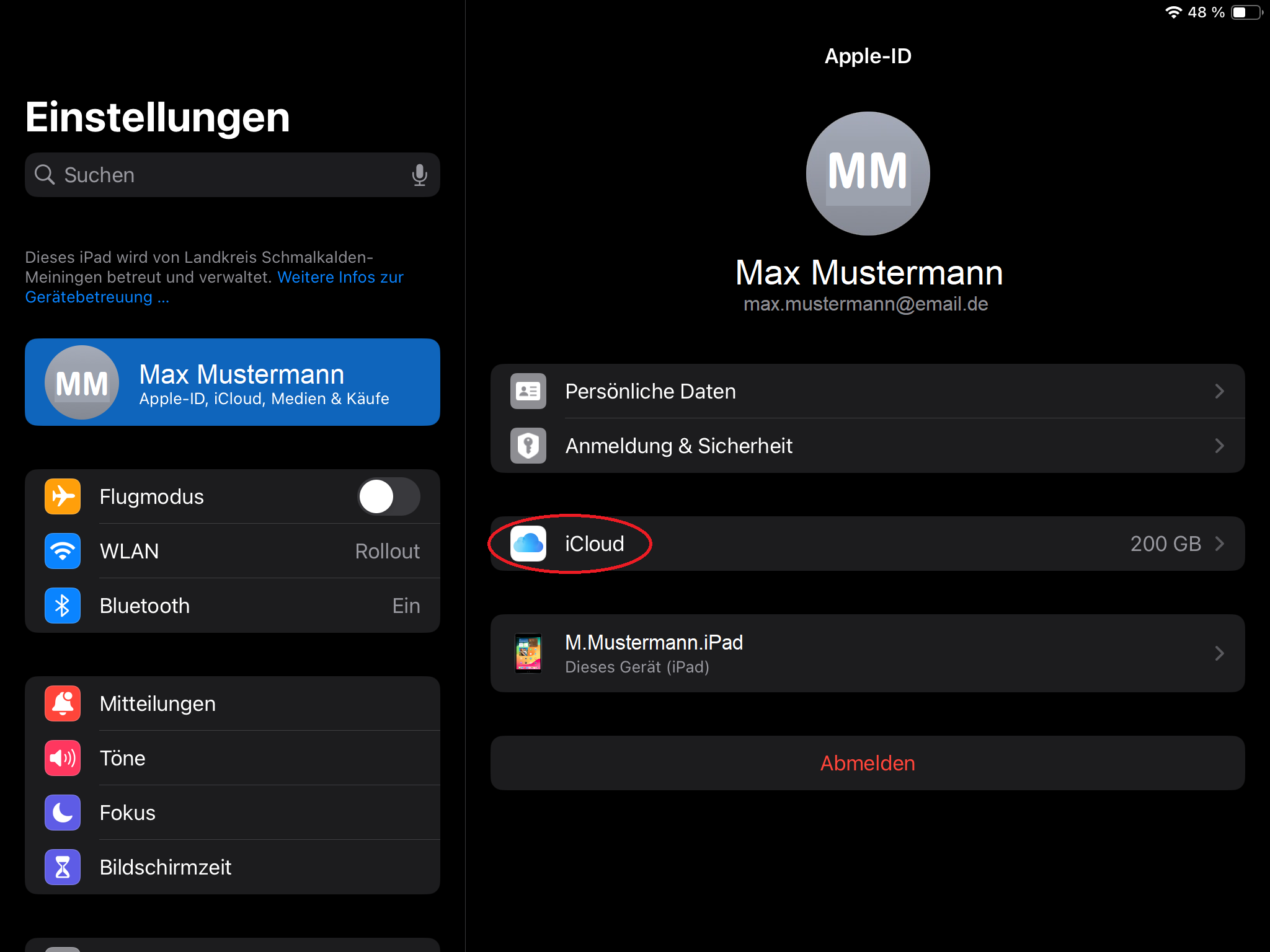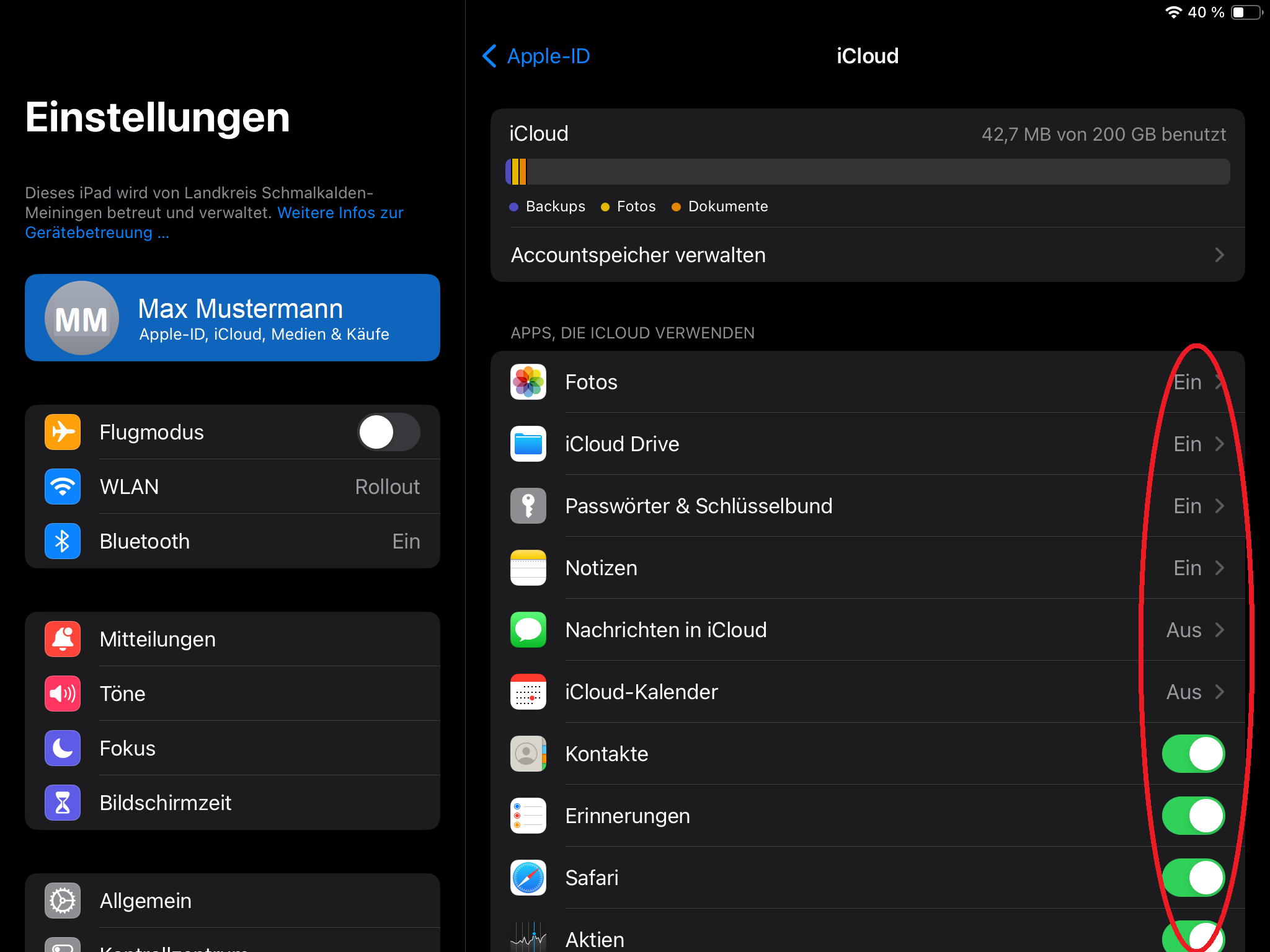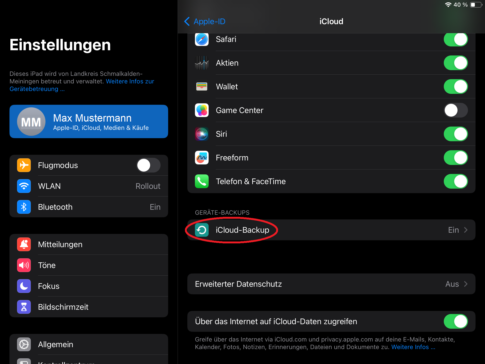 iCloud-Backups können ausschließlich bei Privaten Apple-IDs genutzt werden (bei verwalteten Apple-IDs kann das wiederherstellen aus einem Backup, zum Datenverlust führen)